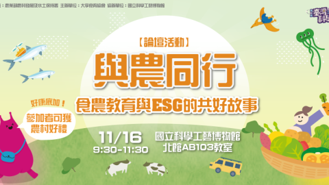 十一月中的週末,大享食育協會於高雄科工館舉行「與農同行」論壇,邀集政府、企業與社區等多方單位,以「企業共耕・食農共好」為主題,帶來跨領域的經驗分享,...