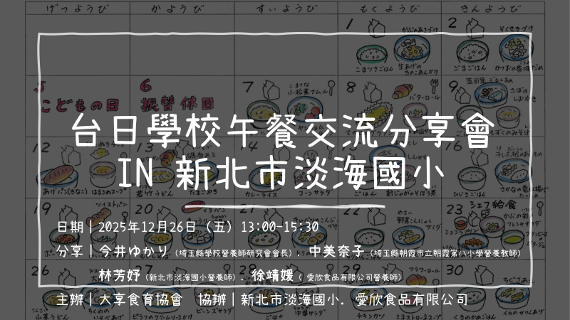 久違的實體臺日學校午餐交流分享會,2025年12月26日,就在新北市淡海國民小學!
