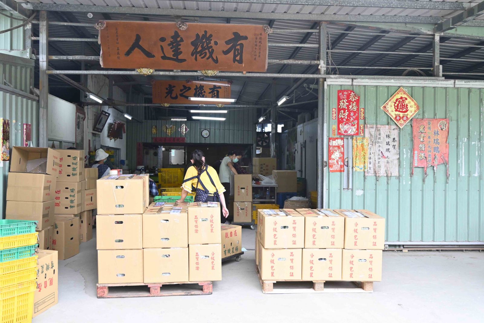 抵達觀自在農場時工作人員正在忙著裝箱出貨全聯。碩大的匾額說明了農場在有機農業的成就。