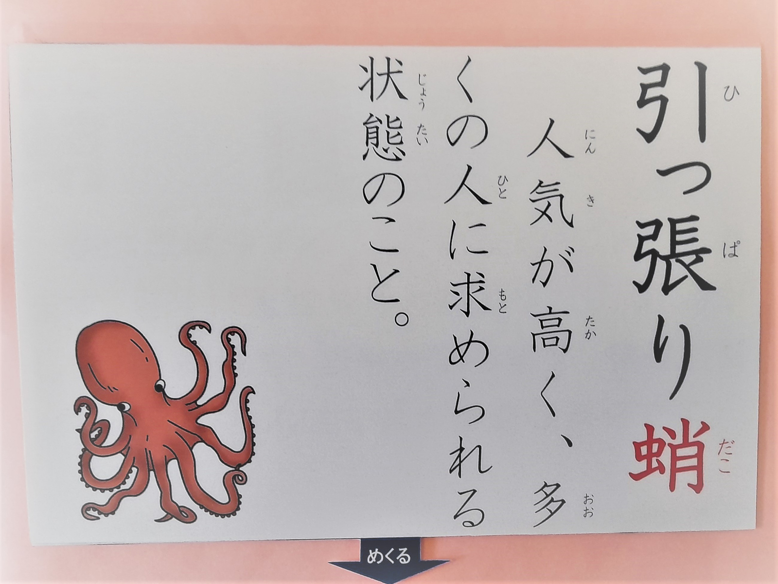 圖說:朝四面八方張著腳的章魚,引申為某人相當受到歡迎,眾人爭相禮聘與提供工作。