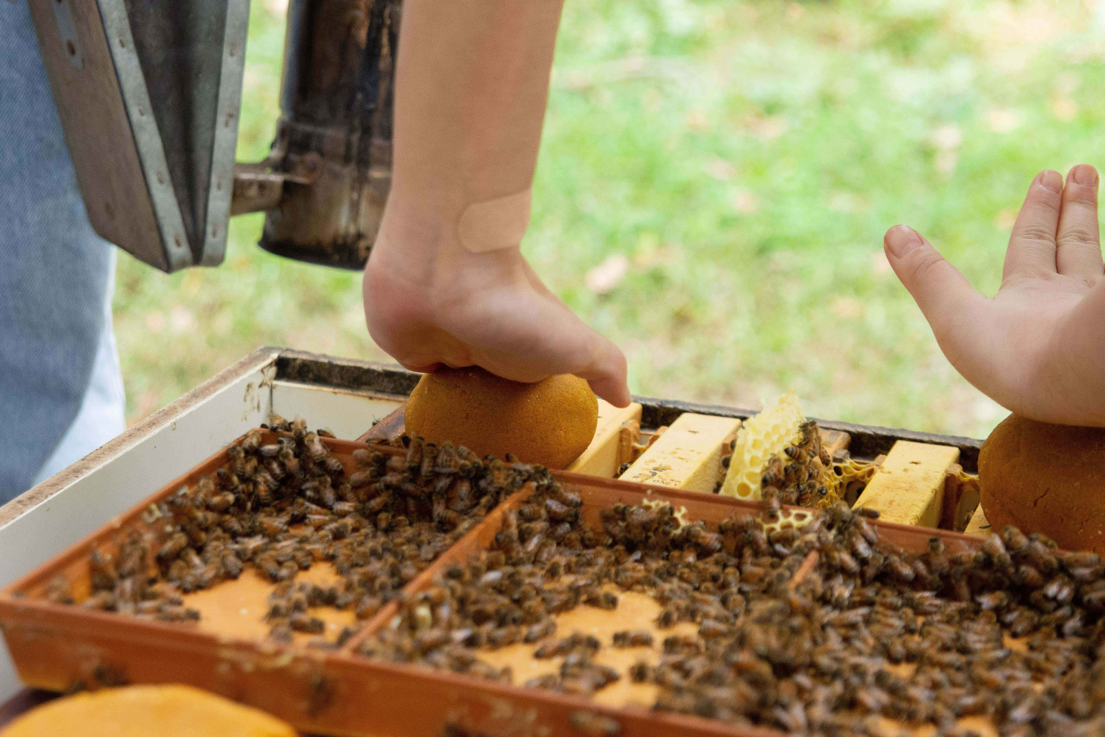 另一個刺激又全新的體驗,是到訪「享樂蜂蜜」與蜜蜂近距離接觸。湊近蜂巢框觀察蜂群、讓雄蜂遊走在手背上、製作蜂糧餵食蜜蜂,無一不挑戰學生的極限!除了與蜜蜂互動,享樂蜂蜜的蜜蜂姐姐也詳盡解說蜜蜂大小、階級、性別等知識,「原來蜜蜂沒有想像中可怕!能夠與牠親近。」「我本來以為蜜蜂都一樣大,沒想到還有雄蜂。因為牠沒有蟄針,所以可以放在手上。」從學生的回饋即可看出這趟體驗滿是收穫。