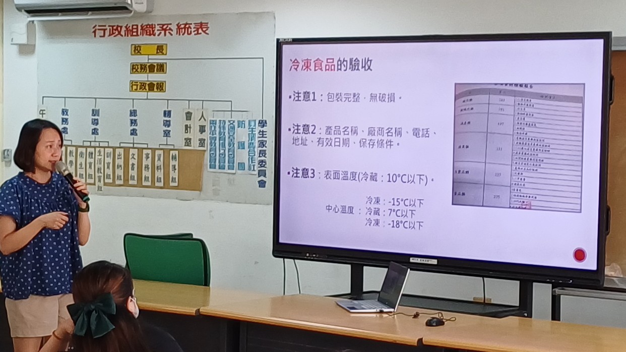 圖:廖巾儀營養師分享冷凍食品驗收應該注意包裝完整、品名、有效期限、表面與中心溫度等項目