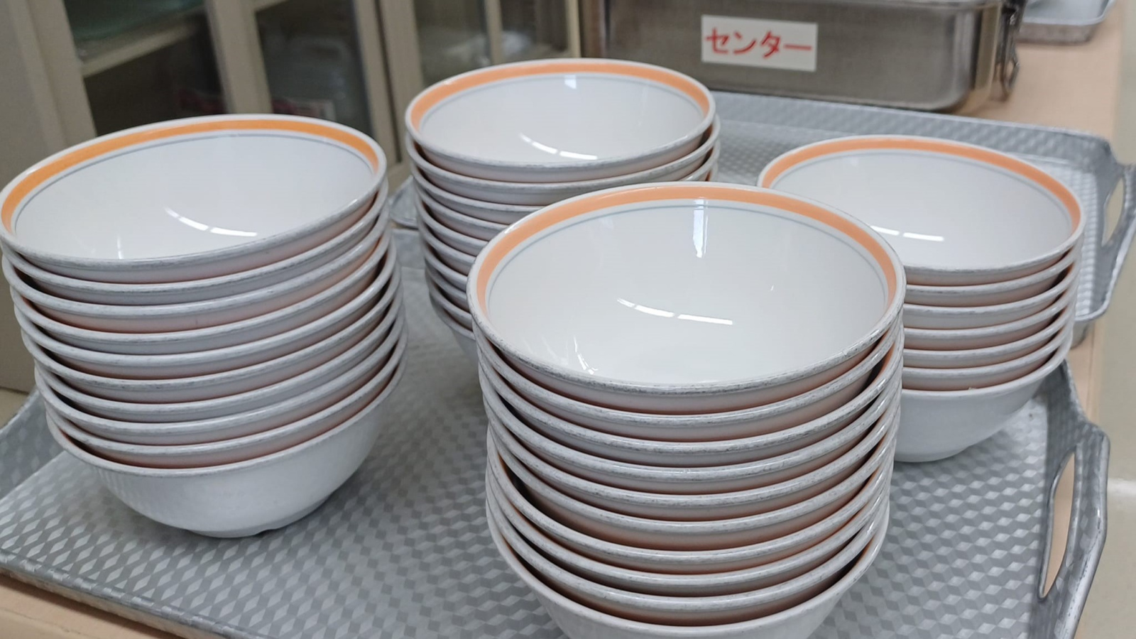 小林先生表示,考量人力、設備和料理工序,每月的菜單設計分為A、B兩種菜單。簡單來說,以今天為例,部份學校學生吃A餐,剩餘的另一部分學校則供應B餐。至於主食種類供應的頻率,平均來說一週五天,三天供應白飯、一天麵包、一天麵(烏龍麵、拉麵、軟麵),均為委託白飯和麵包工廠提供。