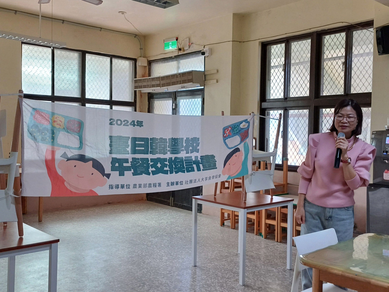 2024年12月5日這一天,我和協會同事前往新竹縣橫山鄉沙坑國小,與全校師生在食堂裡一起享用韓國學校營養午餐,彷彿回到前幾年拜訪韓國校園的時光。沙坑國小楊絮捷校長、新竹縣教育局蔡惠卿營養師也參與其中,共襄盛舉。