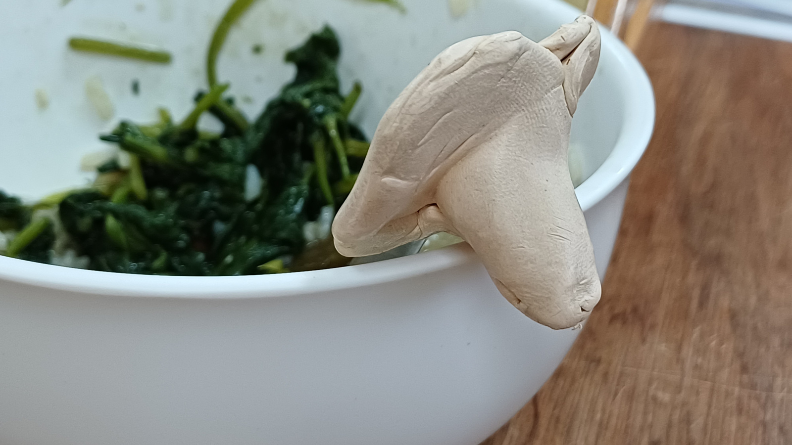 她其實很不喜歡吃青菜。不過老師會教導他們不挑食,多數孩子也都會努力吃完;如果真的抗拒,就再搭配喜歡的食物一起食用。