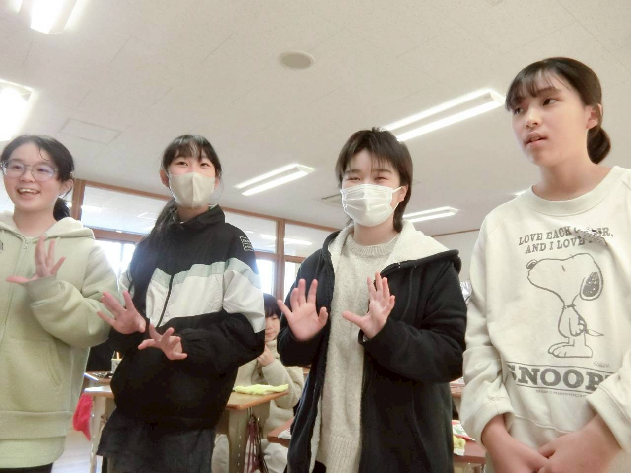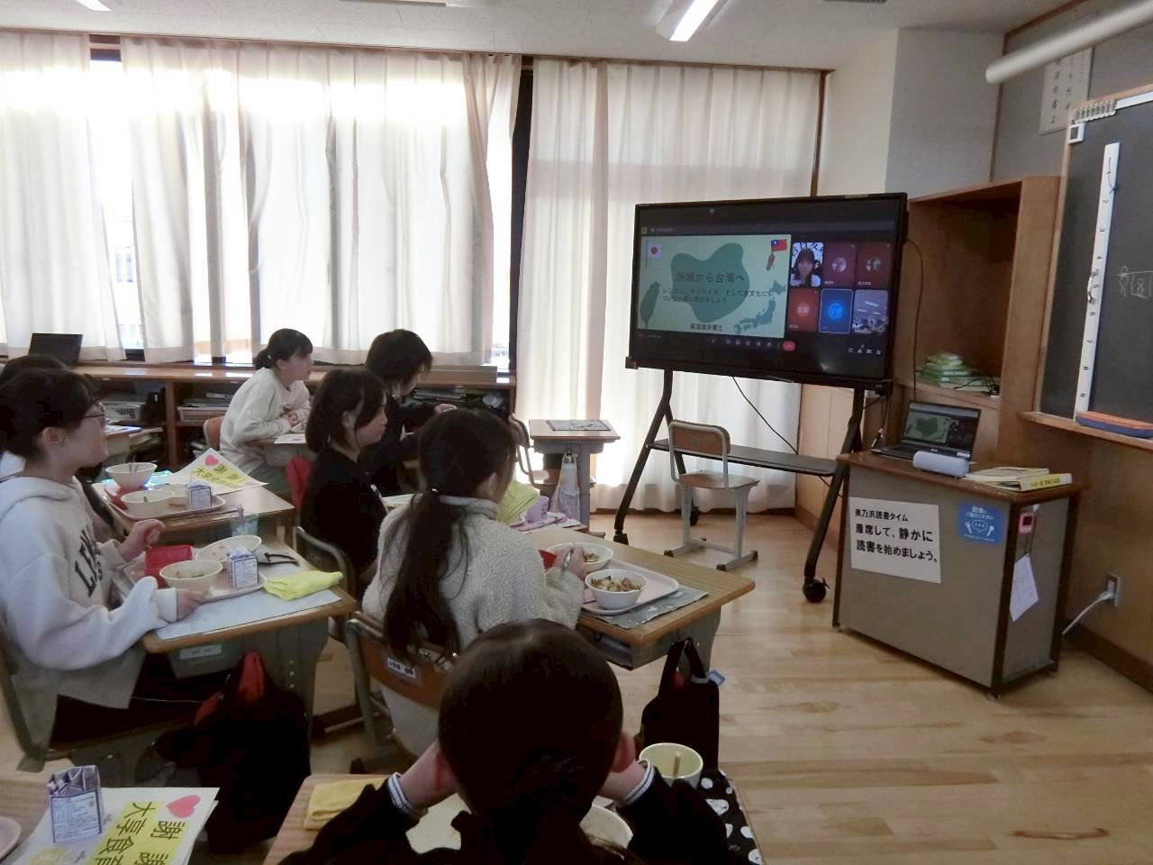 聽著茨城縣美乃濱學園的同學們在鏡頭前說著中文,背景是滿場幾乎沒有停過的笑聲,讓人深深感受到,能透過學校午餐進行跨國交流,真是一件很開心的事啊。