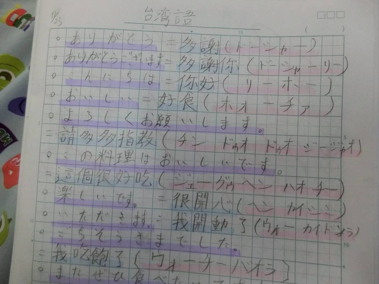 圖說:美乃濱學園學生的台灣語練習稿