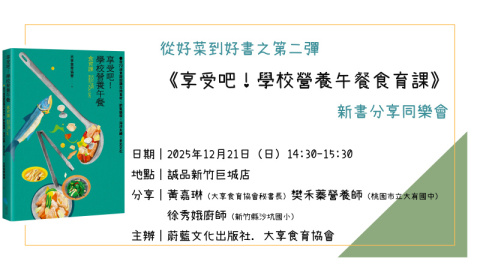 【活動】12/20《享受吧!學校營養午餐食育課》新書分享同樂會@ 誠品生活中友店