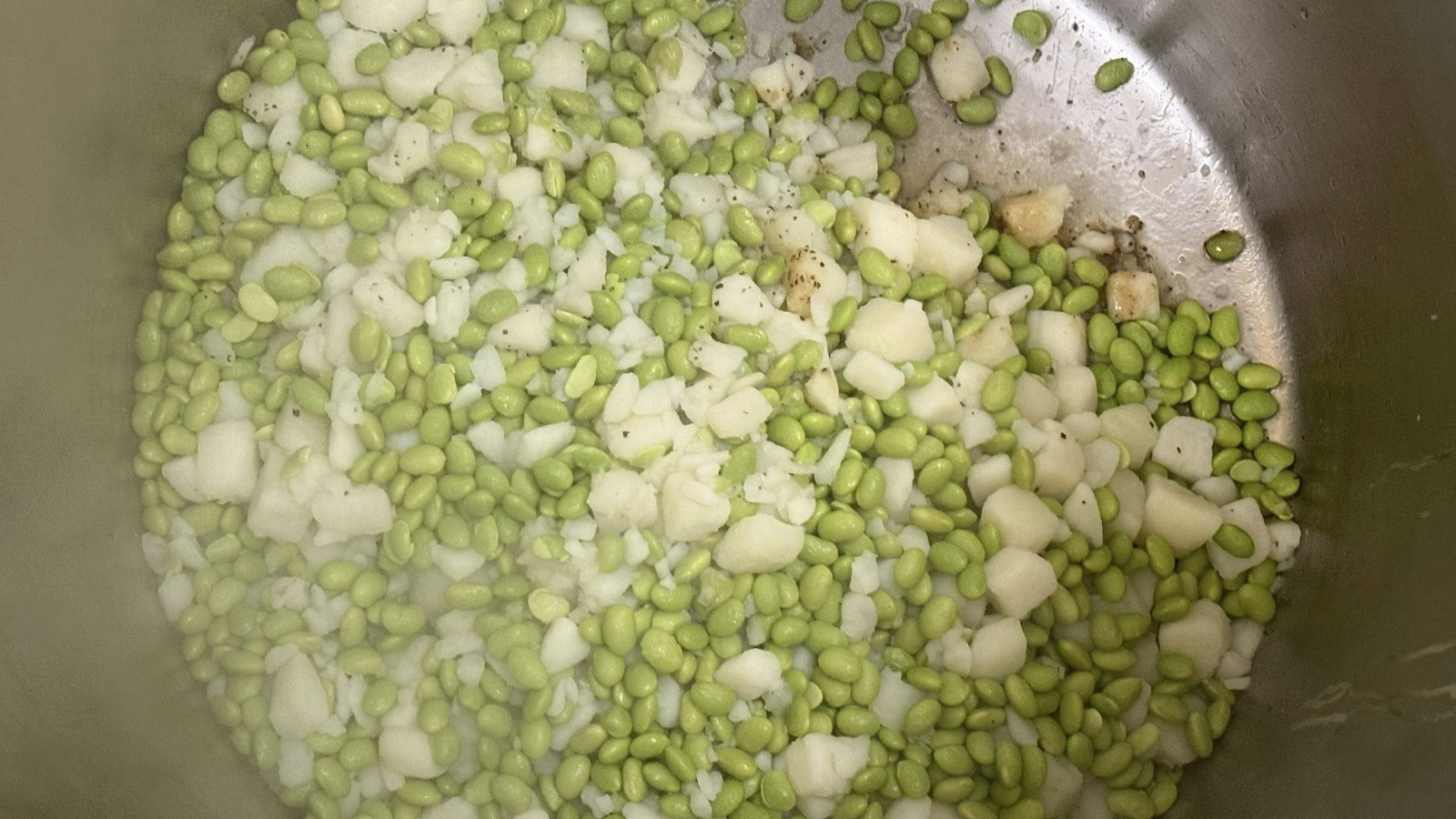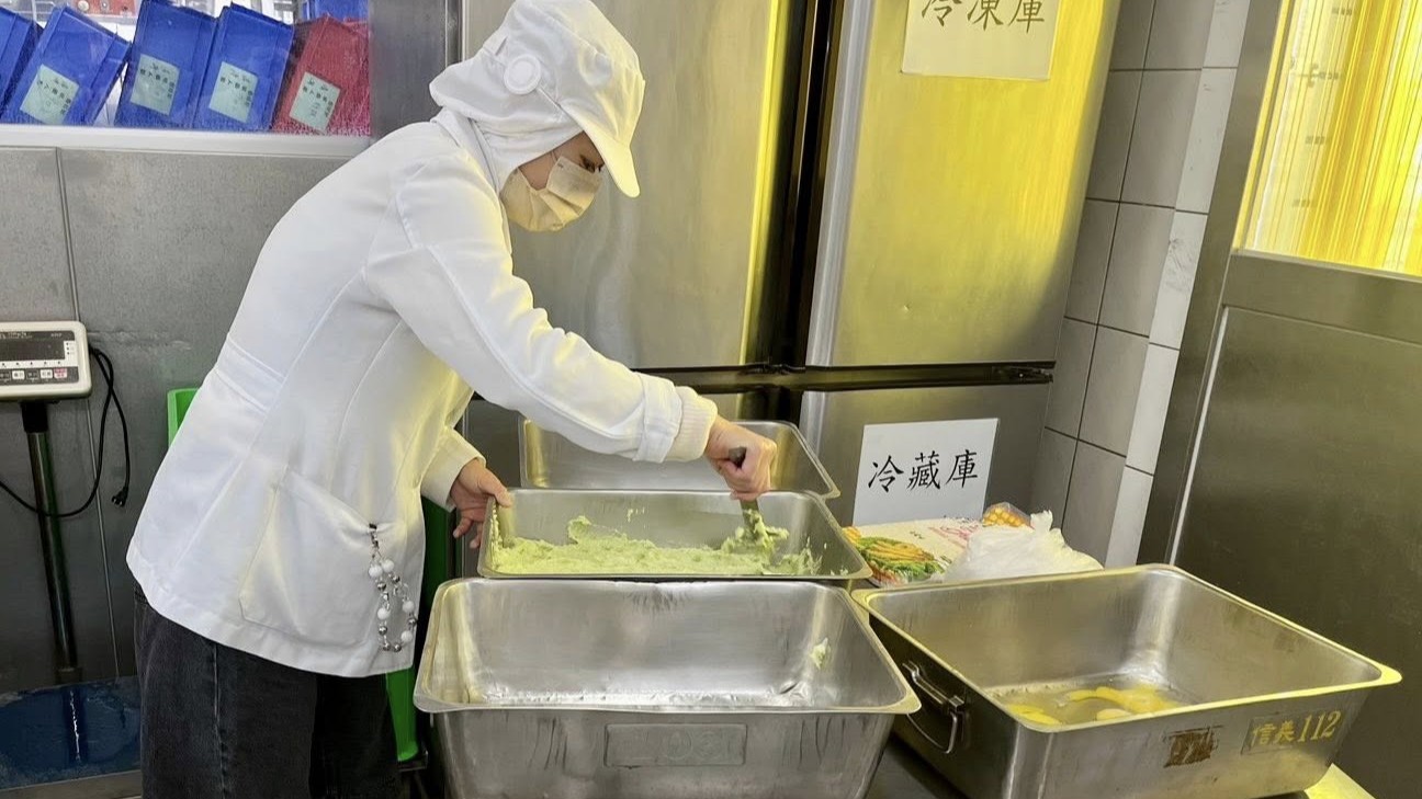 既然是自己提案的「添麻煩料理」,前置作業當然就先由我扛起來,再加上當天因學校還有節目拍攝活動,超級感謝廚媽們和廠商營養師的即時神救援,才能最終順利地完成這道外酥、內 Q、誠意滿滿的毛豆料理。