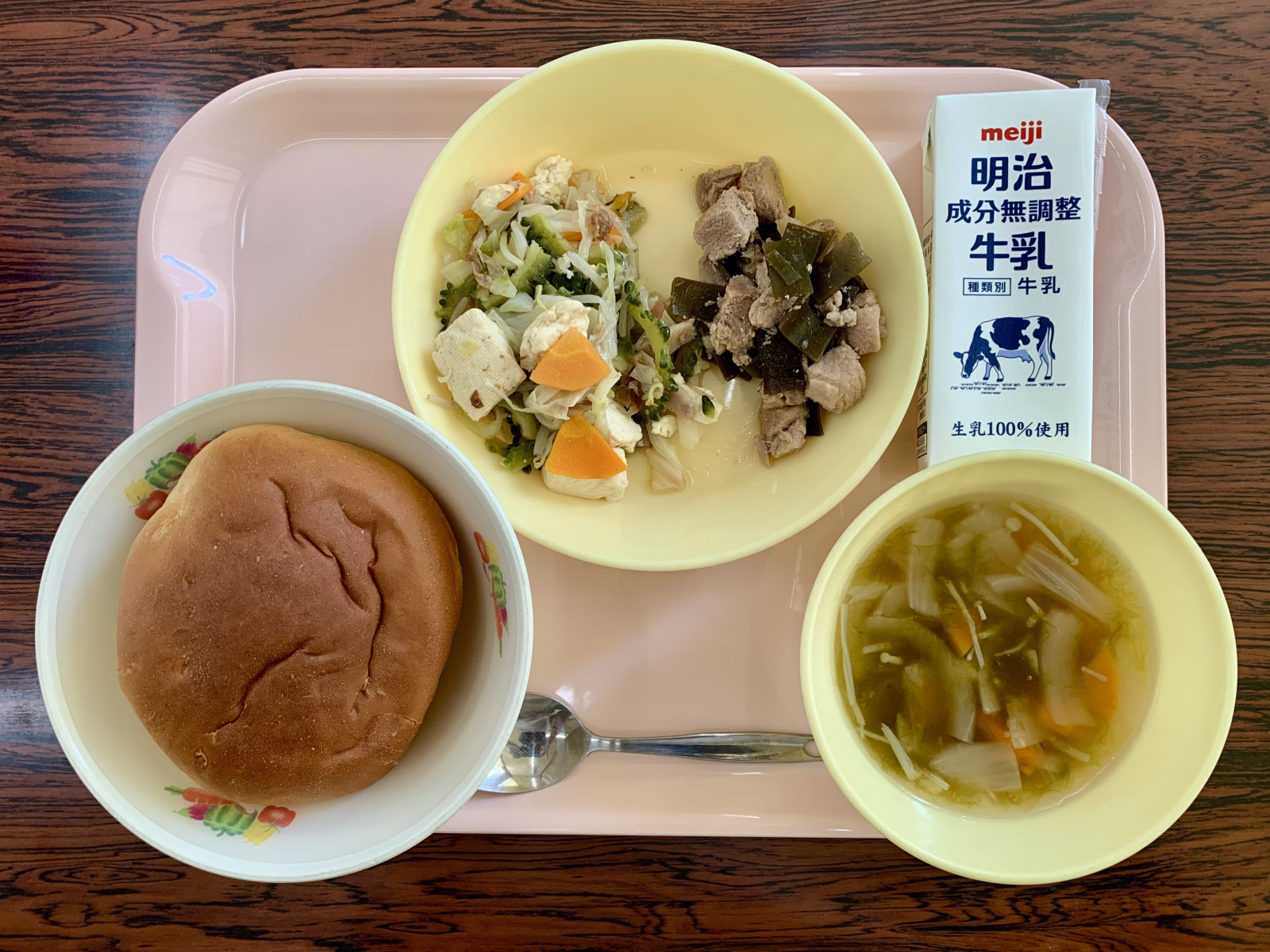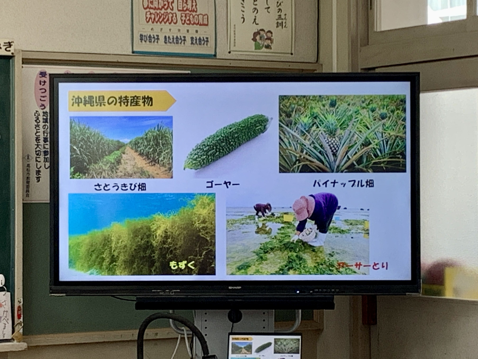 學生享用期間,全校也同步播放定谷晴子營養教師為當日菜單特別製作的食育影片,影片裡頭介紹沖繩料理的特色及當地物產,加深學生對於「沖繩」的印象和理解。