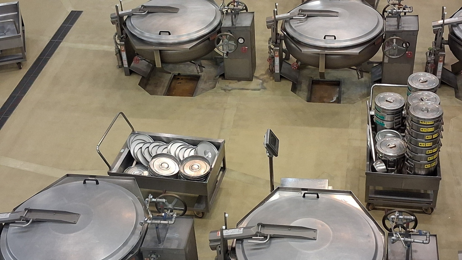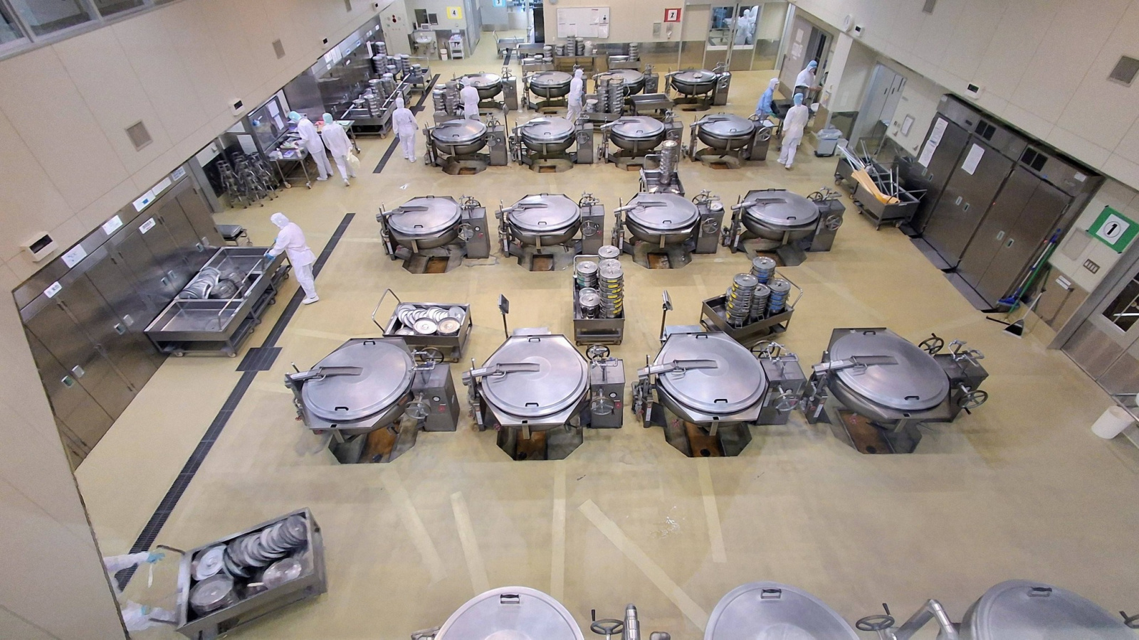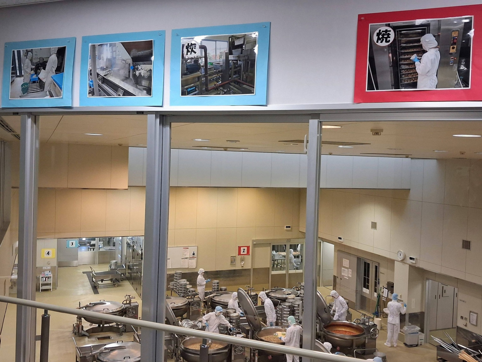 一如過往參觀的學校給食中心,從參觀走道往下觀看料理過程,總是再次驚訝於地板的乾燥程度。