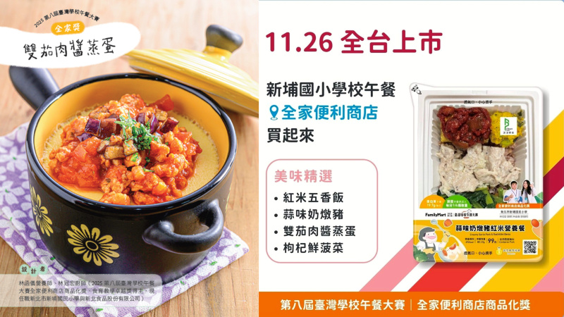 2025年11月26日,這份獲獎餐點正式化身為全家便利商店的鮮食商品—「蒜香奶燉豬紅米營養餐」餐盒,於全國門市限量販售。