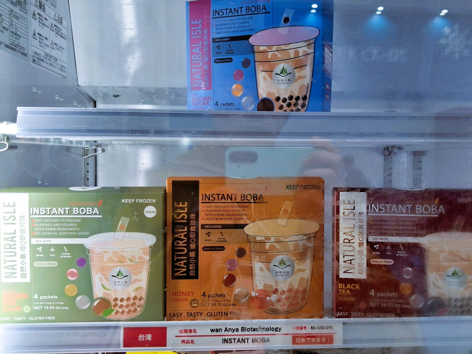 除了,亦有一整區陳列目前尚未進口日本的國外冷凍商品,當然要找找有沒有的台灣商品?猜到了嗎?居然是冷凍的即食波霸(珍珠)呢!