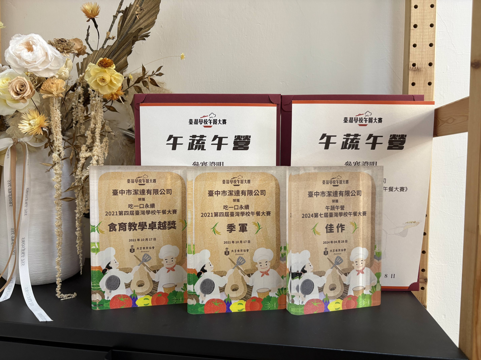 臺中市潔達有限公司第三次入圍臺灣學校午餐大賽,三次的廚師都是劉鴻助廚師領軍,本次搭配的是公司的總經理特助,盧雅琪營養師,準備角逐大賽的好成績。