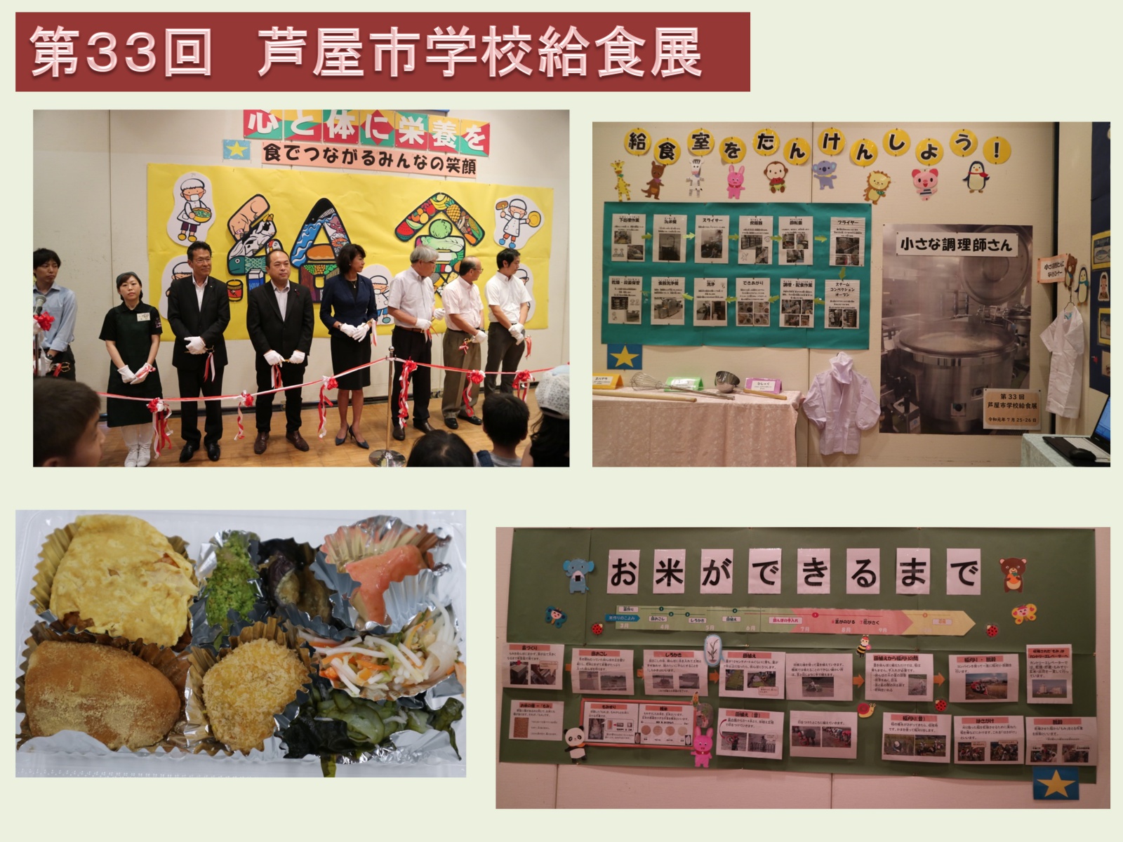 為了對家長與一般市民進行學校午餐的宣傳工作,並提供各種飲食相關資訊,蘆屋市舉辦「蘆屋市學校午餐展」,今年邁入第33屆。其中有大受歡迎的學校午餐試吃區,還有體驗型展示區、學校午餐廚房迴轉鍋、整條帶魚骨鮮魚的正確吃法、學校午餐使用的香辛料等等,用心安排的內容,每次都吸引眾多人入場參觀。
