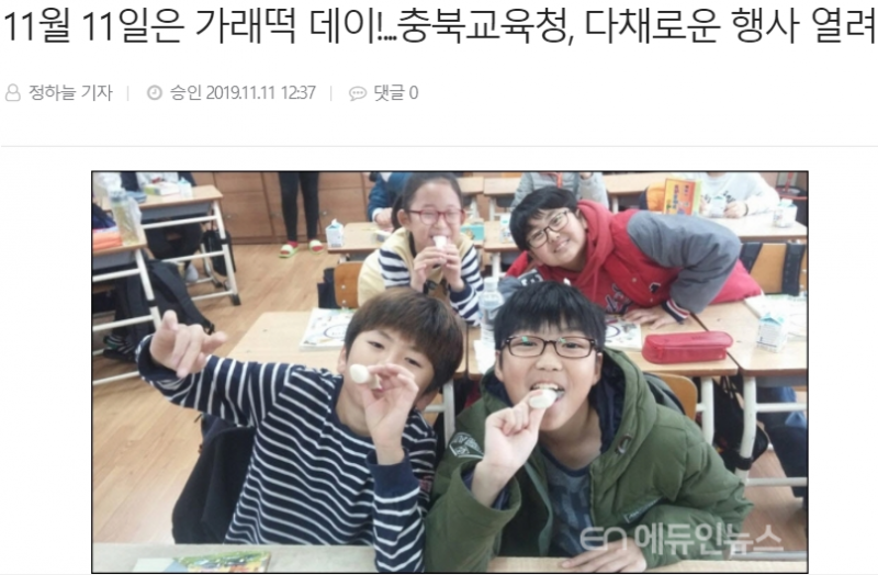 2019年,忠清北道南一小學的學校午餐的菜單上附註了年糕日,供應年糕作為學校午餐。同樣位在忠清北道的五松中學,則舉辦了詩歌創作比賽,期待中學生能透過文字傳達對農民辛勤農作的感謝,以及宣揚米食文化。