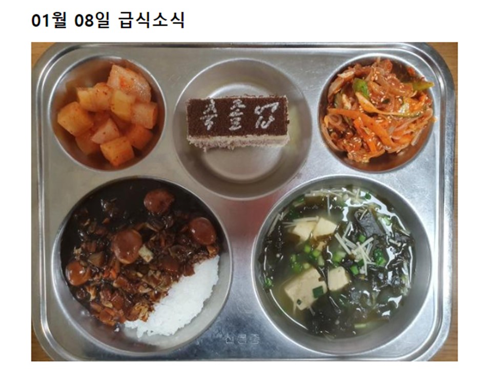 距離首爾以南約40公里的龍仁市新陵中學,於2020年1月8日供應了炸醬飯、蘿蔔泡菜、涼拌田螺麵、畢業小蛋糕,慶祝學生畢業。