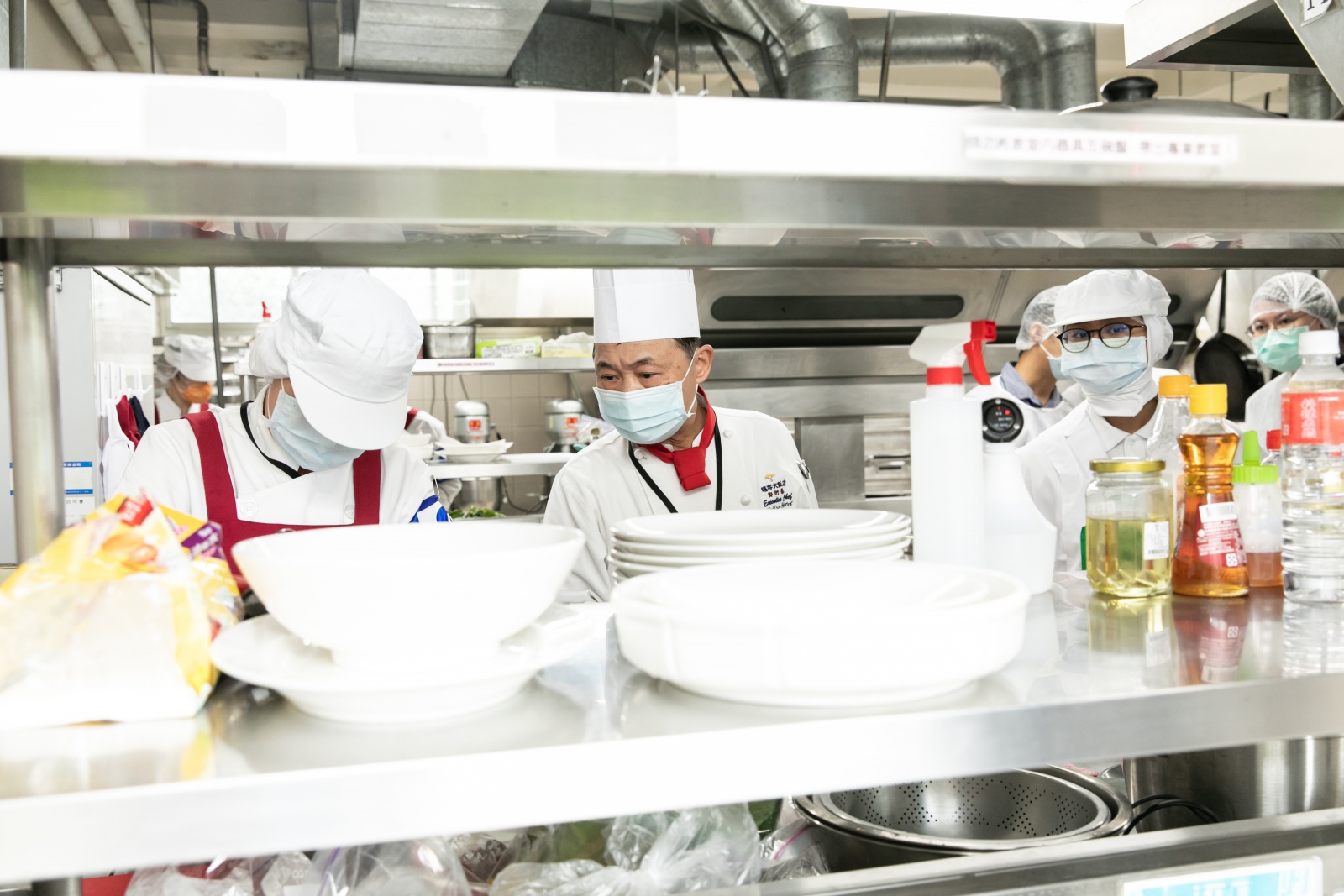 萱:料理比賽在兩間中餐教室舉行,其中發表組兩組都是廚師,因此那一間的狀況整體會比較流暢,而競賽組中廚師仍然比較熟悉刀具、設備,營養師更注重衛生,有比較多需要溝通的地方。