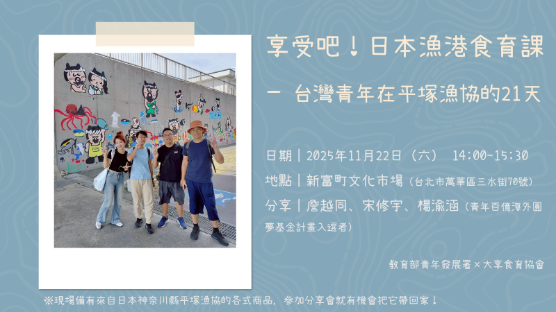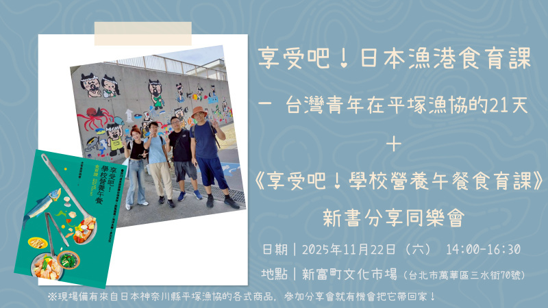 一個週六下午二種享受!11/22日本漁港與臺日韓學校營養午餐食育課,歡迎參加!