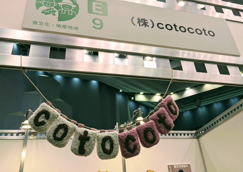 大家覺得Cotocoto唸起來像什麼呢?在食育推進全國大會攤位中,有一攤位掛著毛茸茸的可愛招牌引人注目,上面寫著「cotocoto」,桌上擺著一些料理和圓滾滾的動物圖卡,看得出來應該是為小孩或親子設計的食育活動。