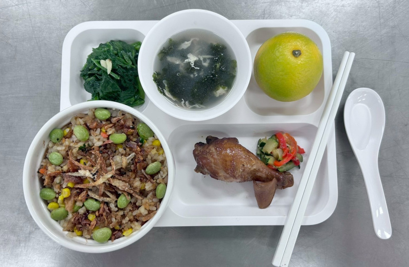 2025 年 12 月 4 日,福井縣南越特別支援學校的櫻川朗江營養教師以大豆為主題推出當天的午餐,包括炸醬麵、甜蝦與大豆的油炸燉煮、台式酸辣湯、橘子與牛乳。
