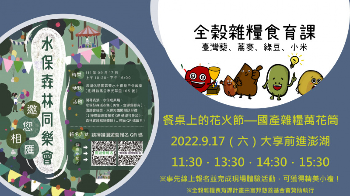 【活動】2022年9月17日(六) 全榖雜糧食育課前進「澎湖水保森林同樂會」