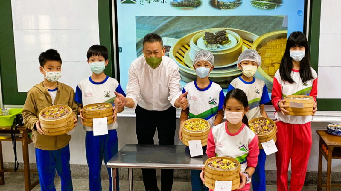 今年剛當上雙料阿公的台菜知名主廚阿發師施建發,帶著他特別為國產紅豆設計的燒賣食譜踏進新北市秀峰國小,首次將五十四年的料理職人功力傳授給一群小學生們。