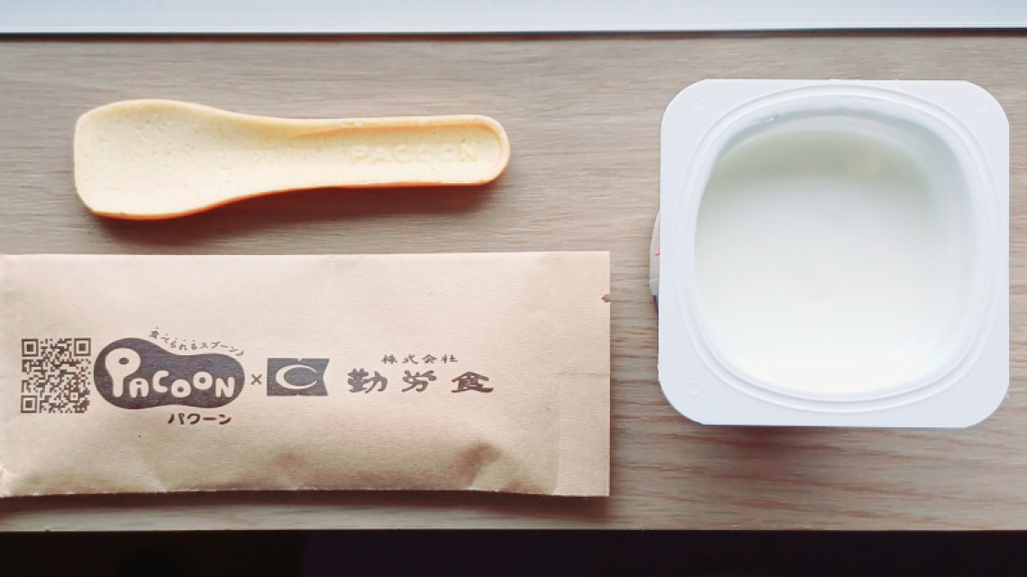 勤勞食公司開發和銷售可食用湯匙「PACOON」,目前共有「豆渣」、「抹茶」、「甜菜」、「南瓜」、「藺草」等使用五種國產野菜原料的品項,每把約8克重。