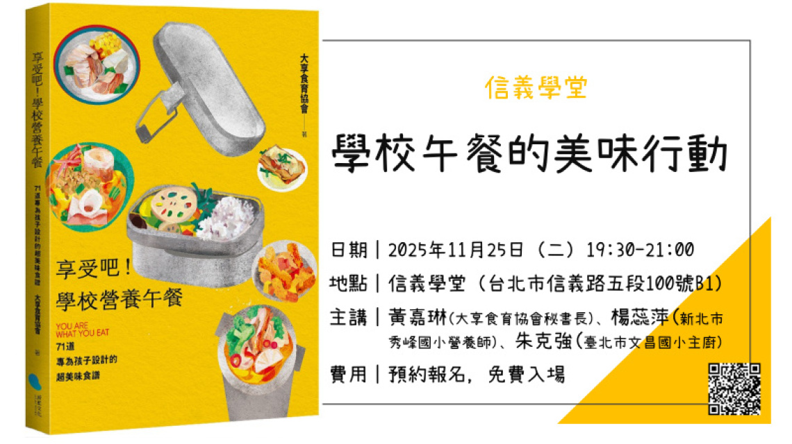 倒數最後三場!《享受吧!學校營養午餐》新書全球巡迴分享會,高雄、嘉義不見不散!