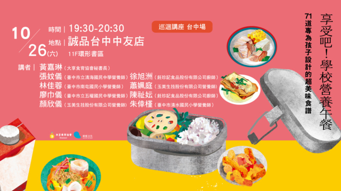 【活動】10/26《享受吧!學校營養午餐》新書巡迴講座@誠品書店中友店