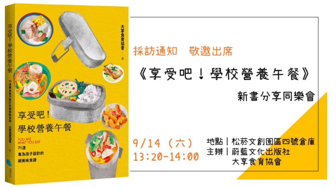 【採訪通知】9月14日(六)「享受吧!學校營養午餐」新書分享同樂會@松菸文創園區四號倉庫