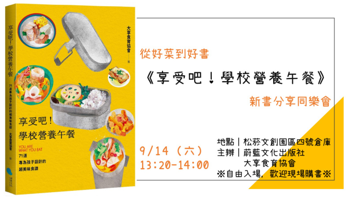 2024年9月14日星期六,《享受吧!學校營養午餐》食譜書於松菸文創園區四號倉庫首賣,歡迎來現場與神秘作者群開心同樂!