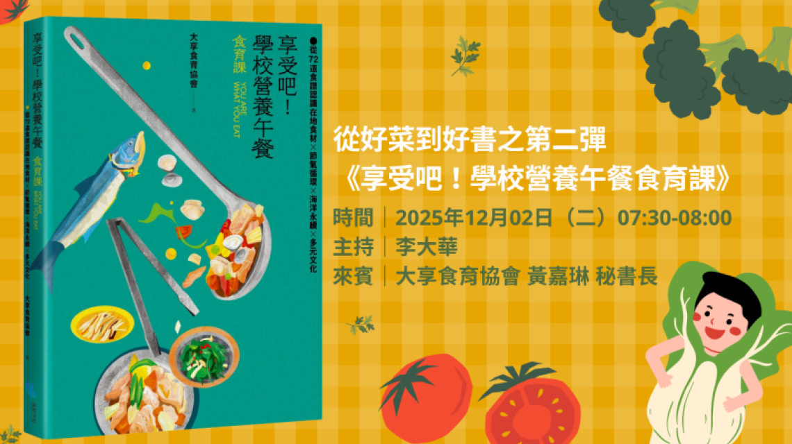 【活動】2025/12/02教育廣播電台大享新食代:從好菜到好書之第二彈《享受吧!學校營養午餐食育課》