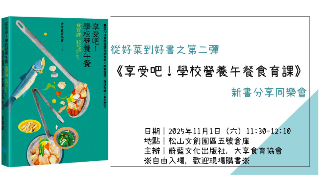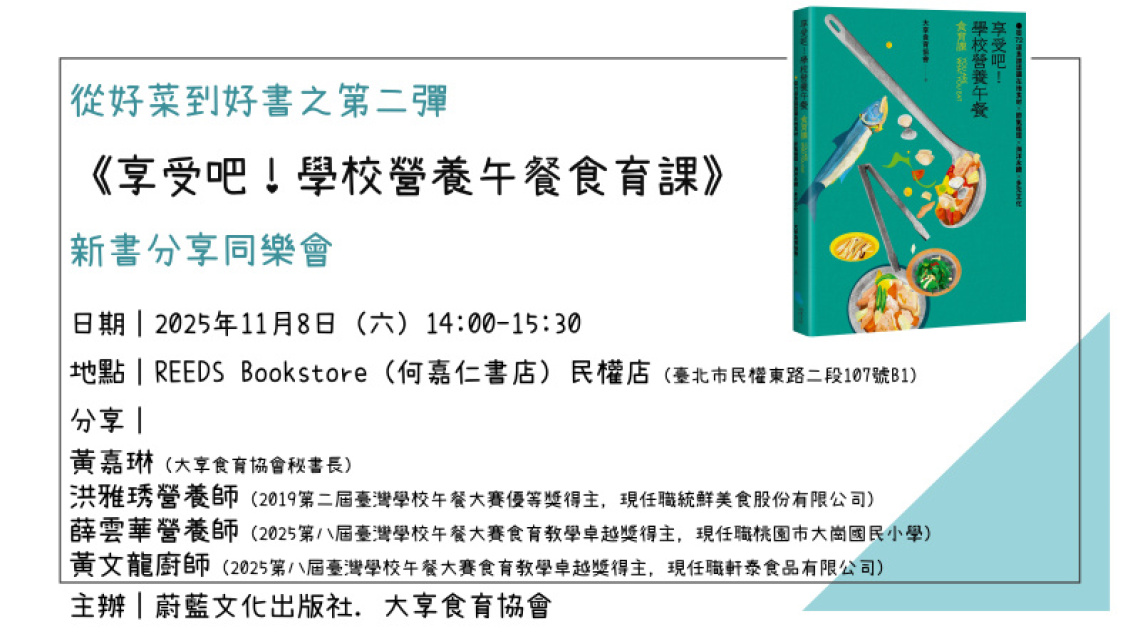【活動】11/8《享受吧!學校營養午餐食育課》新書分享同樂會@何嘉仁書店(民權店)
