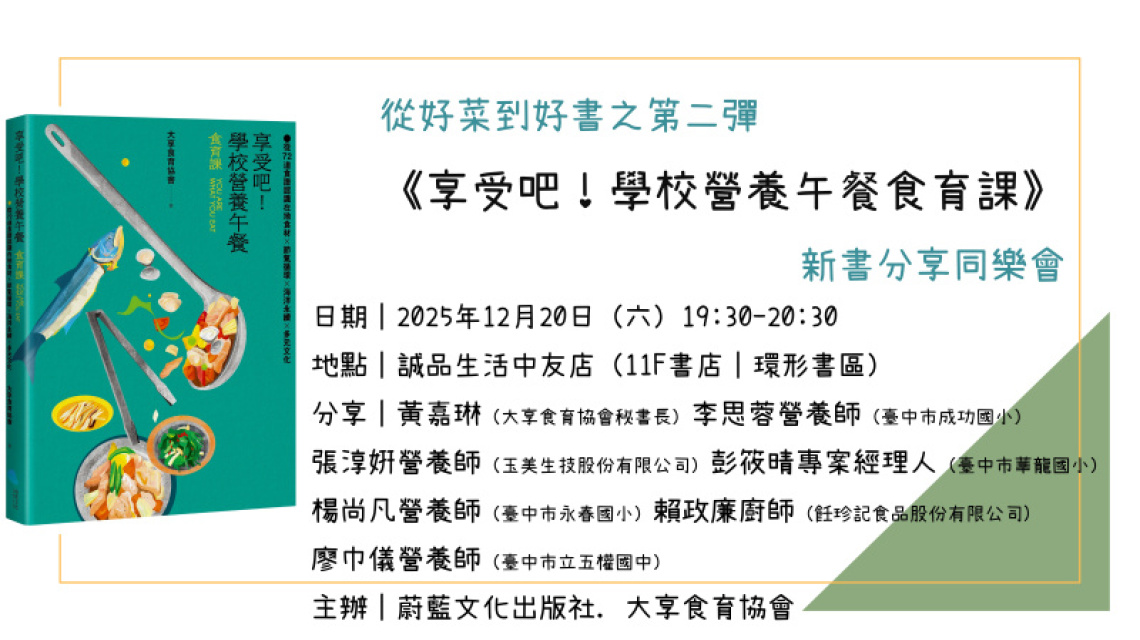 【活動】12/20《享受吧!學校營養午餐食育課》新書分享同樂會@ 誠品生活中友店