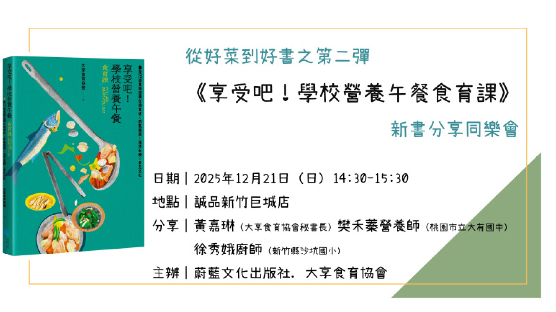 【活動】12/21《享受吧!學校營養午餐食育課》新書分享同樂會@誠品新竹巨城店