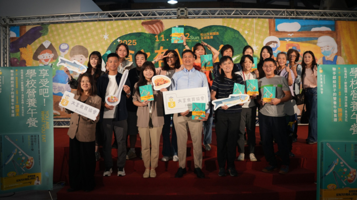 大享食育協會於2025年11月1日舉辦《享受吧!學校營養午餐食育課》首場新書分享同樂會,現場二十多位學校營養師與廚師作者齊聚一堂,分享午餐食譜與幕後故事。