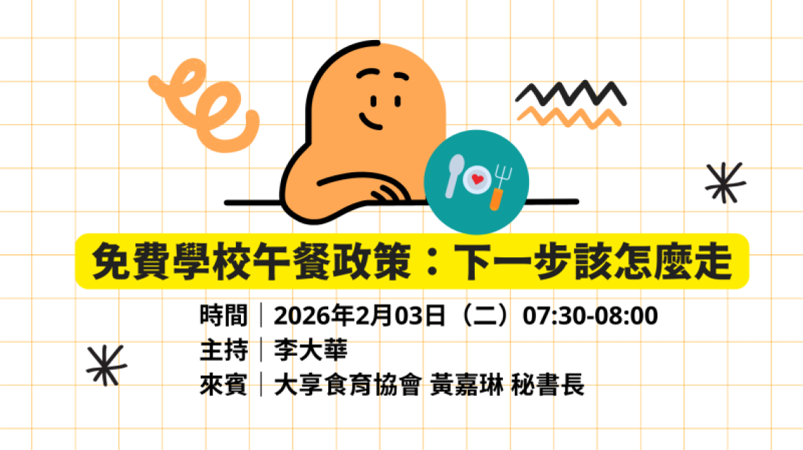 【活動】2026/02/03教育廣播電台大享新食代—免費學校午餐政策:下一步該怎麼走