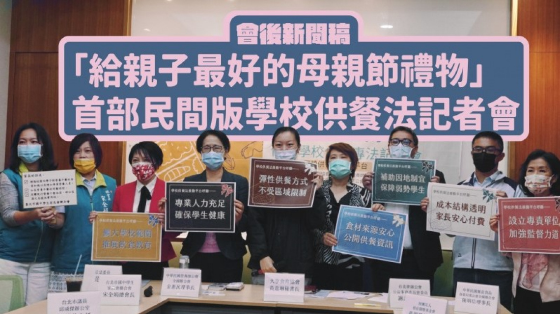 教育部國教署公布「學校午餐條例」草案內容與召開公聽會 發表媒體評論《學校午餐專法 落後日韓一甲子》。