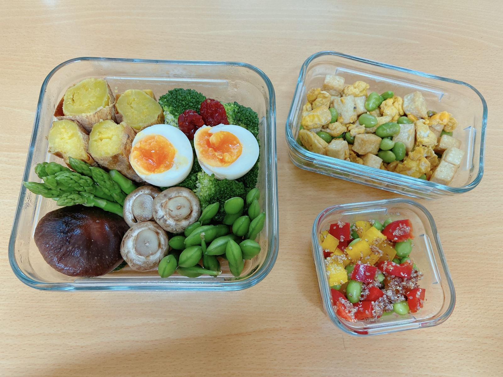 比起白米飯,同樣克數的地瓜的熱量更低(100克的米飯約180大卡,地瓜則約120~130大卡),將白米飯取代為地瓜,可以攝取到更多的營養素。上班族要帶便當,如果不喜歡食物反覆加熱、又能接受冷食,我想冷便當最合適,以蒸地瓜取代白米飯,加上豐富的配菜,例如鹽味毛豆莢、水煮蛋、清燙秋葵和青花菜、烤香菇等等,就是非常健康清爽的原型食物組合。